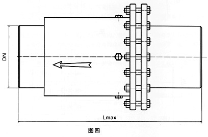 4、對雙向無推力補(bǔ)償器,必須簡圖中所注的介質(zhì)流向安裝,當(dāng)介質(zhì)為蒸汽時,以免補(bǔ)償器內(nèi)形成氣塞。為保障補(bǔ)償器兩個方向的補(bǔ)償量相等,設(shè)計時一定將雙向補(bǔ)償器布置在兩個固定點(diǎn)中間。