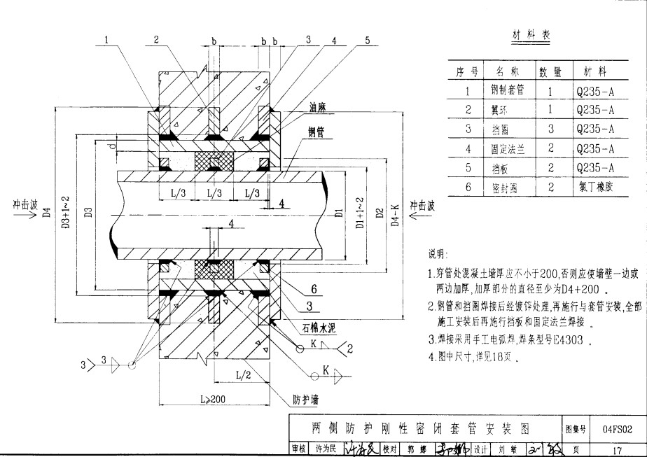 1、剛性密閉套管是按照國家標準04FS02制造生產,材料采用Q235-A。